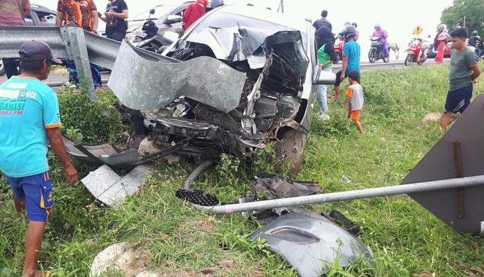 “Mobilnya sendiri, yang punya Polisi, kata dia, ke makassar diantar anaknya sama-sama dengan istrinya, jadi pulangnya kecelakaan, diduga ngantuk karena faktor kecapean,” Cetusnya
