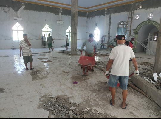 “Selama renovasi berjalan, Alhamdulillah masyarakat ada juga yang menyumbang berupa uang, Snack dan lain lainya, dan masjid ini dibangun hasil patungan masyarakat setempat,”katanya.