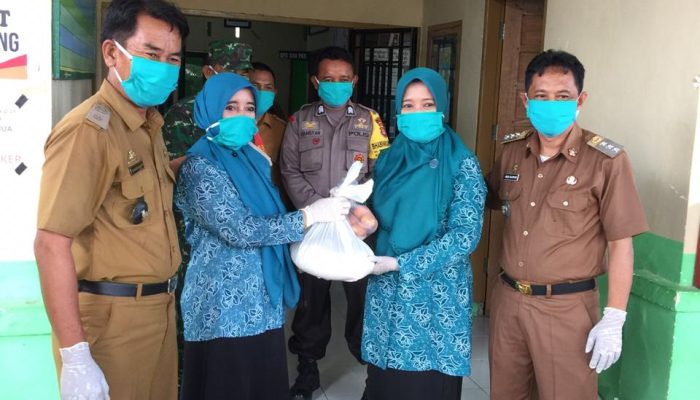Camat Mappakasunggu Abd. Salam Gau bersama ketua TP PKK Kecamatan Mappakasunggu membagikan bantuan sembako yang bersumber dari dana desa tersebut.