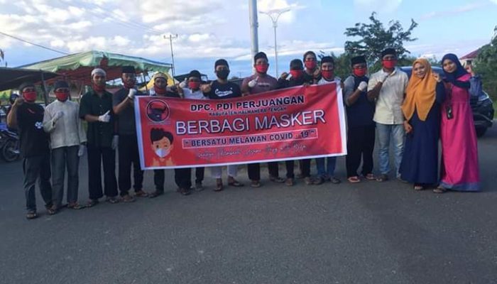TOPIKTERKINI.COM – HALTENG | Dengan adanya perkembagan Covid-19 di Provinsi Maluku Utara yang dikabarkan semakin meningkat ini. Pengurus DPC PDIP Kabupaten Halmahera Tengah Rabu, (6/5/20) pagi tadi melakukan pemembagian 1000 picis masker kain kepada warga masyarakat Kecamatan Weda.