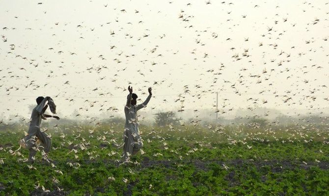 Infestasi belalang terburuk Pakistan dalam sekitar 30 tahun dimulai pada Juni 2019, ketika serangga datang dari Iran dalam gelombang peningkatan iklim yang terkait dengan perubahan kondisi yang kondusif bagi penyebaran serangga.