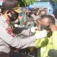Membagikan masker Hari ini lanjut Kapolres, atas inisiasi bapak Kapolri secara serentak di lakukan kampanye kebiasaan baru diseluruh Wilayah Republik Indonesia, tuturnya