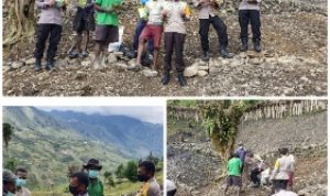 Topikterkini.com.Tolikara.Papua – Kapolres Tolikara AKBP Dr. Y. Takamully, S.H, M.H melalui Kasat Binmas Polres Tolikara Iptu Widada Bersama 5 personil Binmas mengunjungi kelompok tani Tugules Wenda di Distrik Geya guna memberikan bantuan bibit dan bahan makanan, Sabtu (24/04).
