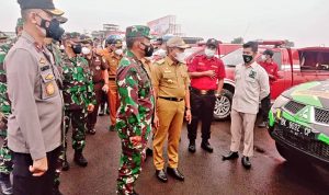 Gubsu Edy Rahmayadi yang didampingi Pangdam I/ BB Mayjen TNI Hassanuddin, Pangkosek Hanudnas III Marsma TNI Muhammad Nurdin, Dan lantamal I Belawan Laksamana Pertama TNI Achmad Wibisono, Waka Poldasu Brigjen Pol Dadang Hartanto, serta Dan Lanud Suwondo Kolonel Pnb J.H. Ginting, berhenti sejenak didepan kenderaan KSJ ketika meninjau peserta apel gabungan dengan kenderaan masing masing.