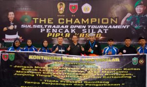 TOPIKterkini.com, TAKALAR — Kodim 1426 Takalar mengikut sertakan 10 atlet pencak silat Kabupaten Takalar untuk ikut bertarung di Piala Kasad Cup 2023 yang dilaksanakan di Gor Sudiang Makassar, kontingen tersebut dipimpin langsung oleh Komandan Kodim 1426 Takalar Letkol Kav Nanang Sujatmiko, Jum’at (19/05/2023).