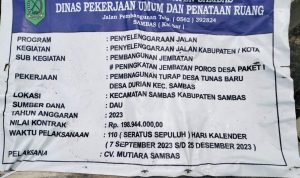 Proyek tersebut diduga dikerjakan tanpa pengawasan dan terkesan ada pembiaran dari pihak PUPR Kabupaten Sambas
