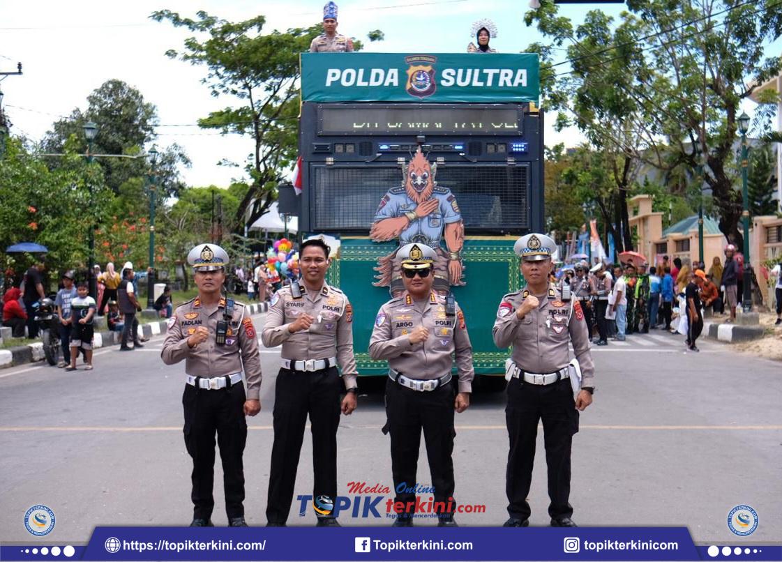 Direktur Lalu Lintas Polda Sultra, Kombes Pol. Dr. Argo Wiyono, S.H., S.I.K., M.Si., menyampaikan bahwa jajaran kepolisian telah melakukan monitoring, pengamanan, dan koordinasi bersama Dinas Perhubungan untuk memastikan kelancaran arus lalu lintas serta keamanan selama kegiatan berlangsung. Seluruh rangkaian pawai berjalan aman, tertib, dan kondusif.
