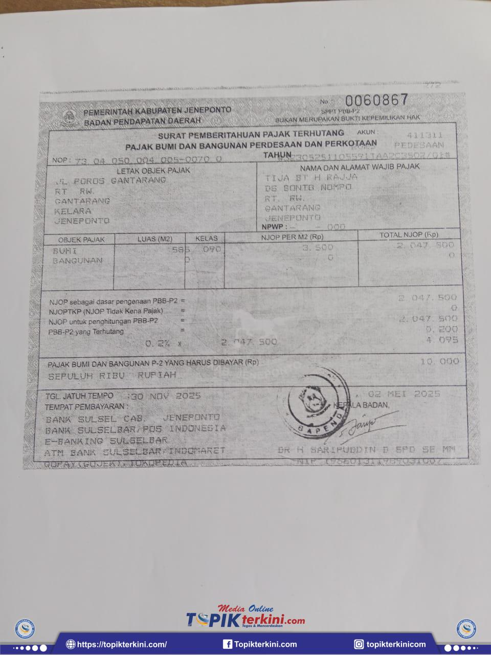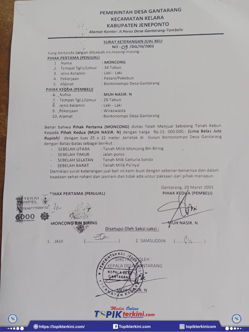 Kepala Dusun Bontobaru, H. Jajji, yang ikut menandatangani transaksi, juga memberikan keterangan serupa.