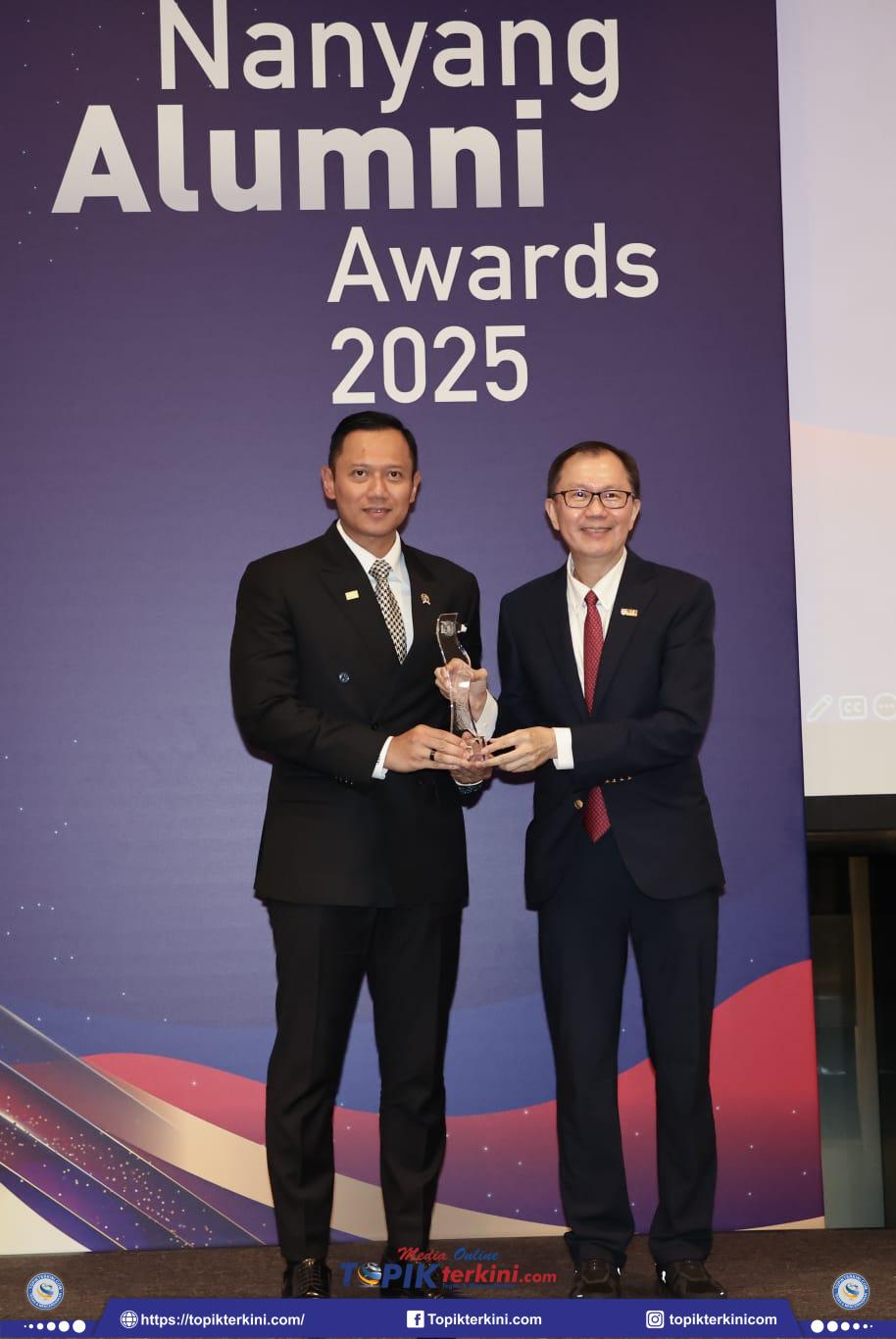 Topikterkini.com.SINGAPURA — Menteri Koordinator Bidang Infrastruktur dan Pembangunan Kewilayahan, Agus Harimurti Yudhoyono (AHY), menerima Nanyang Distinguished Alumni Award 2025, penghargaan tertinggi bagi alumni Nanyang Technological University (NTU) Singapura, pada Jumat (21/11/2025). Penghargaan prestisius ini diberikan kepada alumni yang dinilai memberi kontribusi luar biasa bagi masyarakat, bangsa, dan komunitas global.
