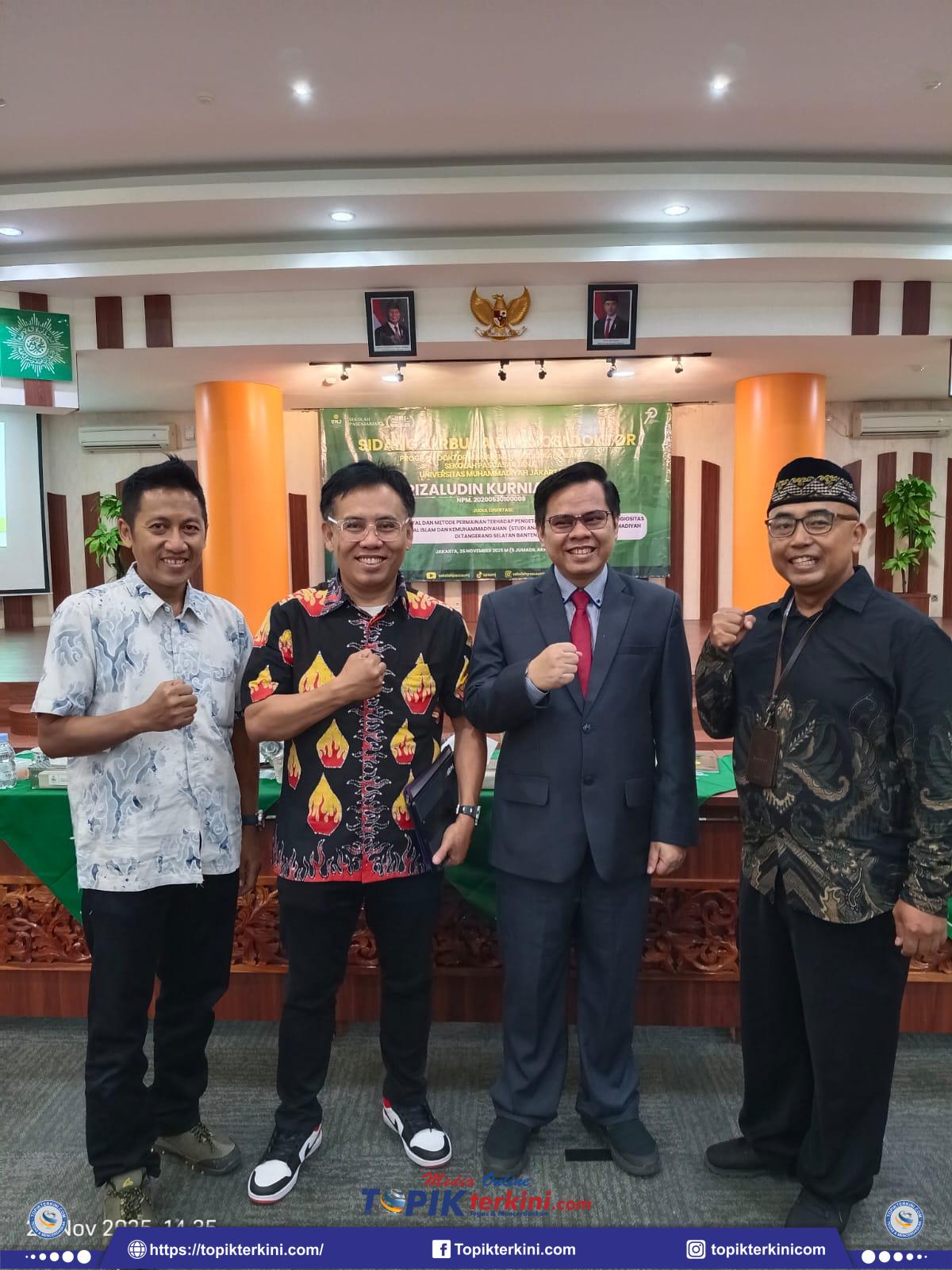 Sidang berlangsung di hadapan para promotor dan dewan penguji yang dipimpin langsung oleh Rektor UMJ, Prof. Dr. Ma’mun Murod, M.Si.