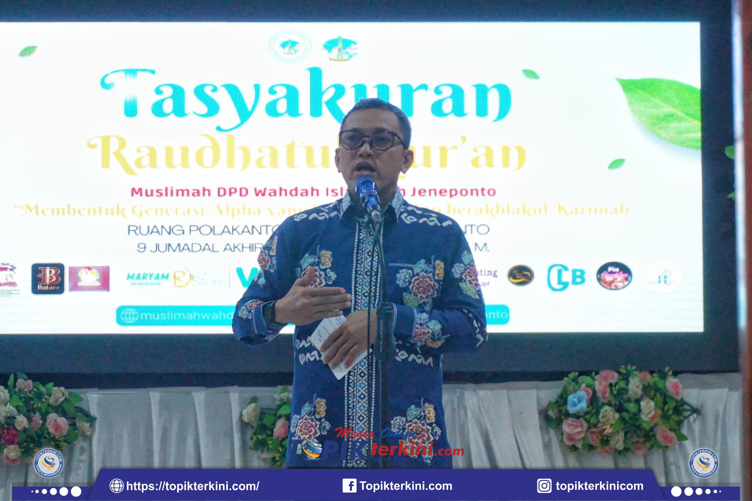 Bupati Jeneponto, H. Paris Yasir dalam sambutannya memberikan apresiasi terhadap dedikasi Wahda Islamiyah dalam pembinaan generasi Qur’ani di daerah.