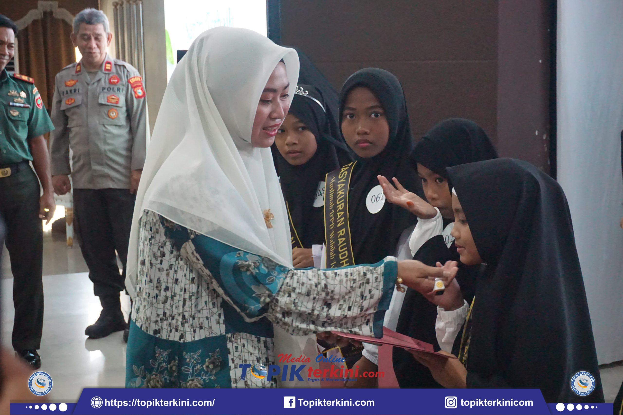Bupati dan Ketua TP PKK turut menyerahkan penghargaan langsung kepada para santri berprestasi.