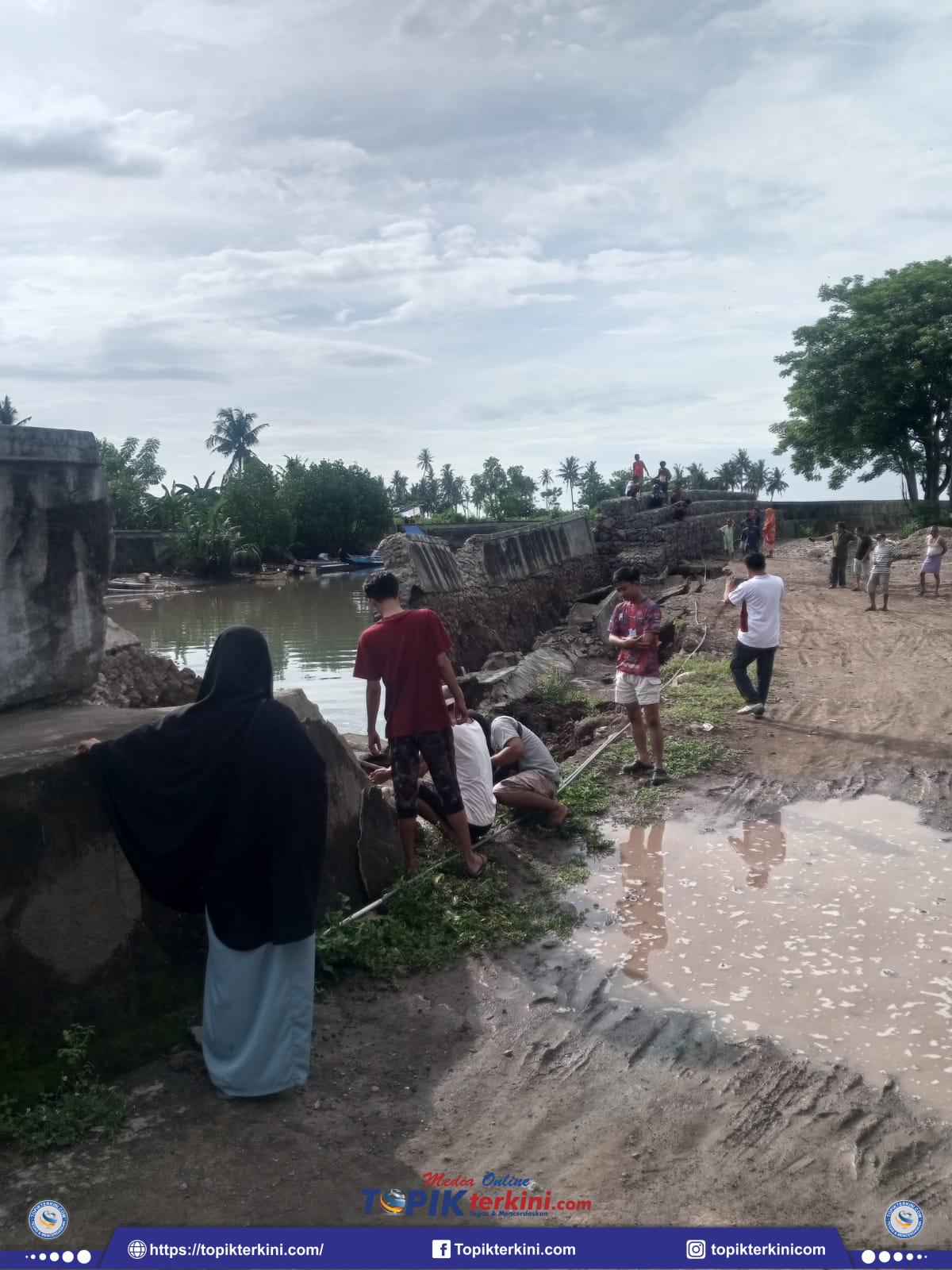 “Tak ada hujan tak ada angin tiba terdengar dentuman suara runtuh” ungkap Sattar yang kediamannya berada dihadapan Tanggul. Masih beruntung tidak ada aktifitas warga yang biasanya ramai (memancing) ditepi tanggul tersebut, tambahnya.