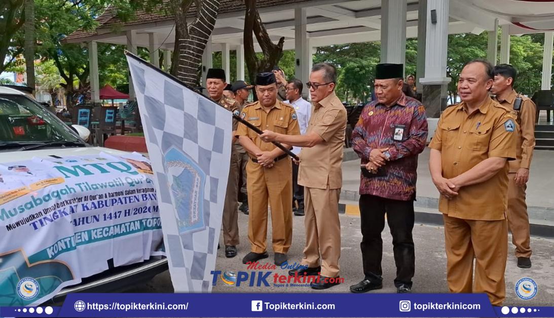 TOPIKterkini.com–Bantaeng; Sekretaris Daerah kabupaten Bantaeng Abd. Wahab melepas pawai mobil Kafilah MTQ tingkat Kabupaten Bantaeng di Tribun Lapangan Pantai Seruni, Selasa 12/1/2026.