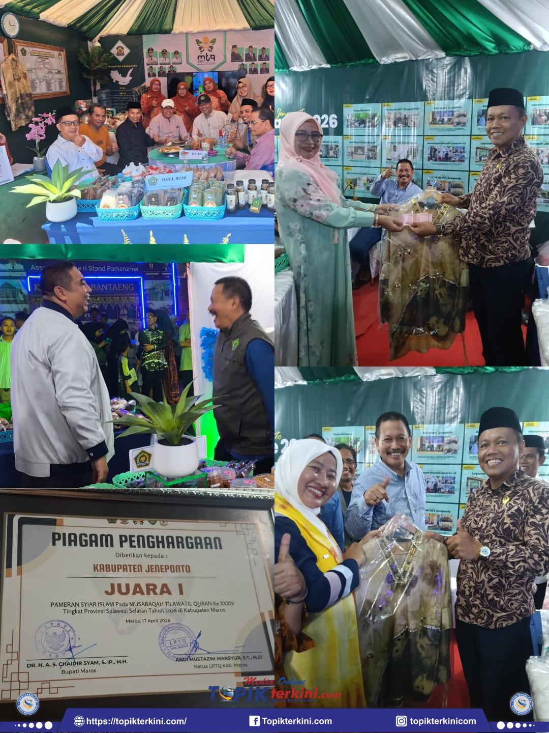 MAROS, topikterkini com – Keberhasilan Kabupaten Jeneponto meraih Juara 1 Pameran Syiar Islam pada ajang Musabaqah Tilawatil Qur’an (MTQ) XXXIV Tingkat Provinsi Sulawesi Selatan yang berlangsung di Maros pada 12–18 April 2026, menjadi bukti nyata kekuatan sinergi dan potensi unggulan daerah.