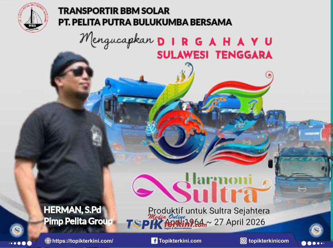 Pimpinan dan keluarga besar PT. Pelita Putra Bulukumba Bersama (PPBB), HERMAN, S.Pd mengucapkan Dirgahayu ke-62 Tahun Provinsi Suawesi Tenggara. Dengan Harmoni Sultra, semoga kekayaan budaya dan potensi daerah semakin membawa keberkahan bagi seluruh masyarakat.