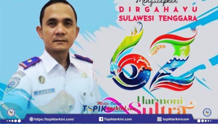 Kepala Kantor Unit Penyeleggara Pelabuhan (KUPP) Kelas III Pomalaa, Cakra A, Situmeang, S.H, mengucapkan Dirgahayu Provinsi Sulawesi Tenggara ke-62. “Terus bergerak, terus berkarya, untuk Sultra yang maju, aman dan sejahtera”.